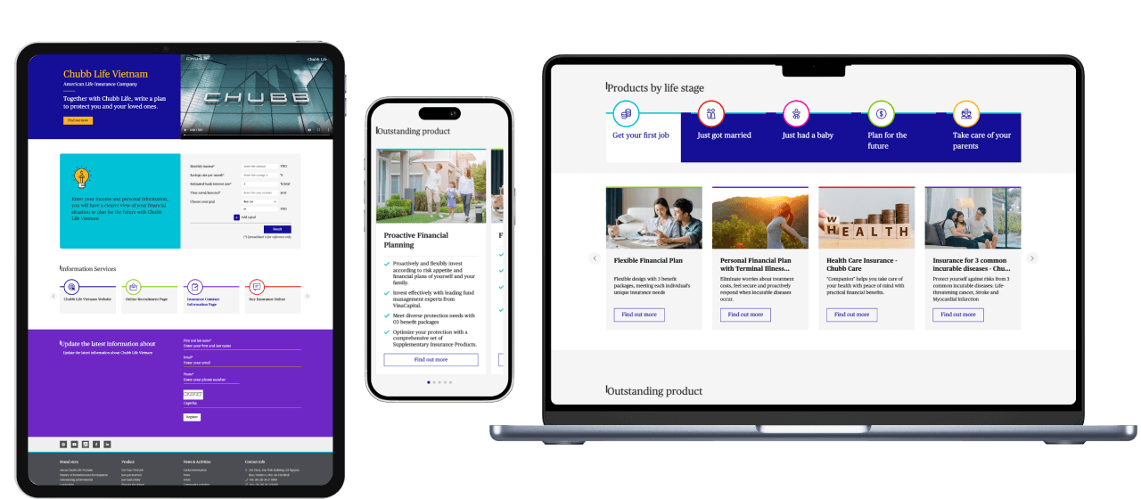 Ecard Chubb website features dynamic slider banners to capture user attention and reinforce key messaging. A smart and useful personal financial planning tool is incorporated into the homepage. What's more? The Resource page provides in-depth information about the brand, insurance contracts, and related details. We also added a product filter to the product listing page, allowing users to find their desired products tailored to their specific needs. Lastly, newsletter sign-up forms are placed at the end of each page to help increase the conversion rate and a call-to-action form is incorporated to encourage visitors to take the desired action.